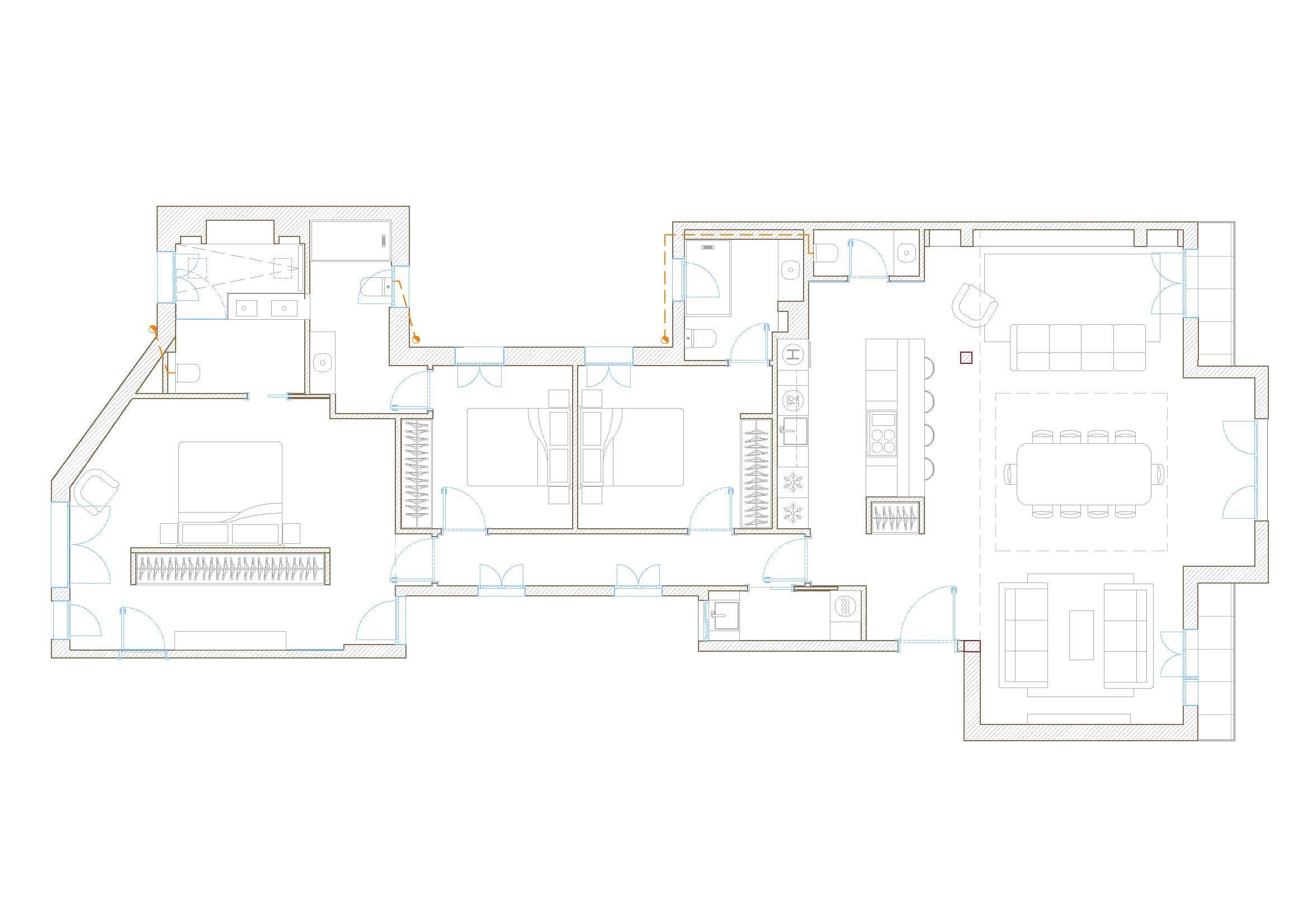 Con una superficie de 199 m² construidos, la propiedad ha sido objeto de una reforma integral con materiales de alta calidad. Al acceder, se encuentra una espectacular zona social de 70m², que unifica un salón de dos ambientes, comedor y una cocina abierta con isla. Este espacio goza de gran luminosidad gracias a tres balcones exteriores a la calle Maudes. La cocina es de alta gama, equipada con electrodomésticos Bosch integrados.